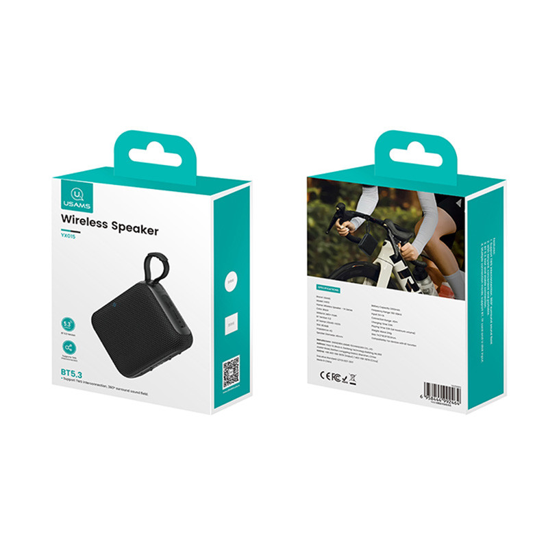 اسپیکر بلوتوثی قابل حمل یوسمز مدل YX015 یک اسپیکر جذاب از شرکت Usams می باشد. اسپیکر YX015 از طریق فناوری بلوتوث نسخه 5.3 به تلفنهمراه یا پخشکنندهی صوتی متصل میشود و میتواند صدایی با کیفیت خوب به کاربر ارایه کند. طراحی اسپیکر قابل حمل یوسامز بسیار جذاب می باشد و با ابعاد 39.3× 93.8 × 74.2 میلیمتر و وزن 214 گرمی جزو اسپیکرهای سبک وزن به حساب میآید. همچنین یک بند کوتاه برای حمل آسان به اسپیکر متصل است، بنابراین می توانید از آن هم به عنوان یک اسپیکر رومیزی و هم به عنوان یک اسپیکر قابل حمل استفاده کنید. اسپیکر قابل حمل usams مدل yx015 از فناوری TWS پشتیبانی میکند. با فناوری True Wireless Stereo نیازی به اتصال سیمی بین دستگاههای پخش صوت مانند هندزفری و اسپیکر و دستگاه منبع صوت مانند کامپیوتر و تلفن همراه وجود ندارد، زیرا میتوان آنها را از طریق بلوتوث به یکدیگر متصل کرد. دو یا چند اسپیکر بلوتوث با پشتیبانی از فناوری TWS را در نظر بگیرید، این اسپیکرها میتوانند به صورت همزمان به یک گیرنده بلوتوث مانند گوشی موبایل یا لپ تاپ متصل شوند و موسیقی پخش شده را با صدایی بلندتر پخش کنند. اسپیکر یوسمز مدل YX015 قابلیت پخش صدای استریو 360 درجه را دارد که تجربهای بینظیر از پخش موسیقی را برای شما به ارمغان می آورد. این اسپیکر دارای باتری 1200 میلی آمپری است که در 3.5 ساعت شارژ کامل میشود و مصرف برق بسیار کمی دارد. همچنین این اسپیکر دارای یک پورت USB و یک پورت کارت حافظه میباشد که میتوانید از این روشها هم موسیقی خود را پخش کنید.